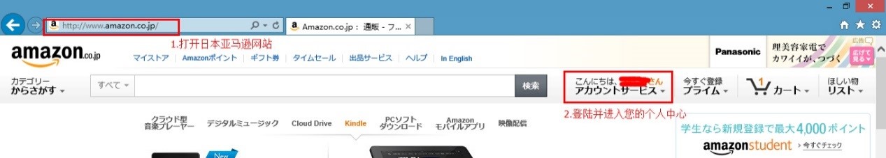 1.打开日本亚马逊网站的首页,进入您的个人中心。